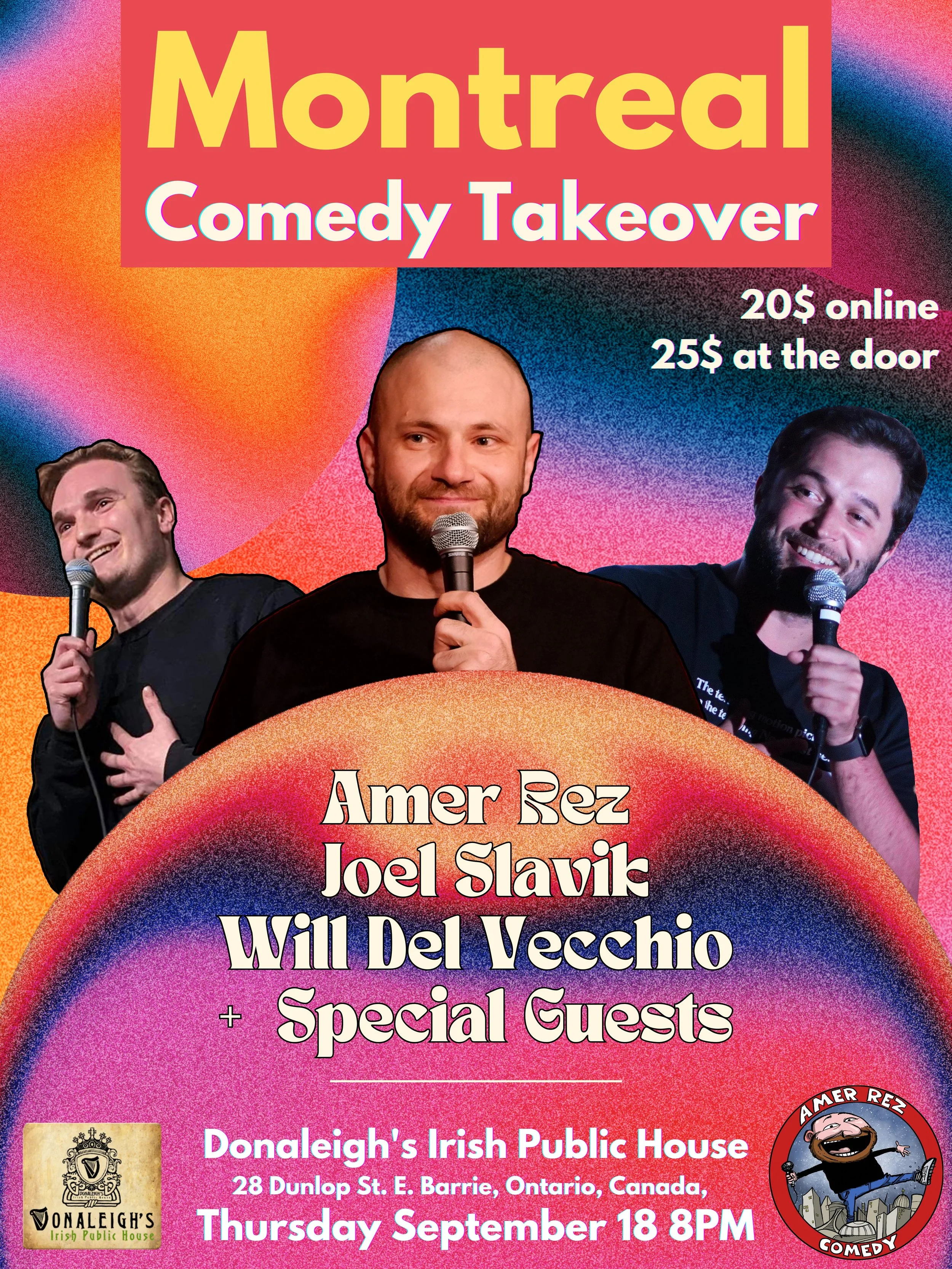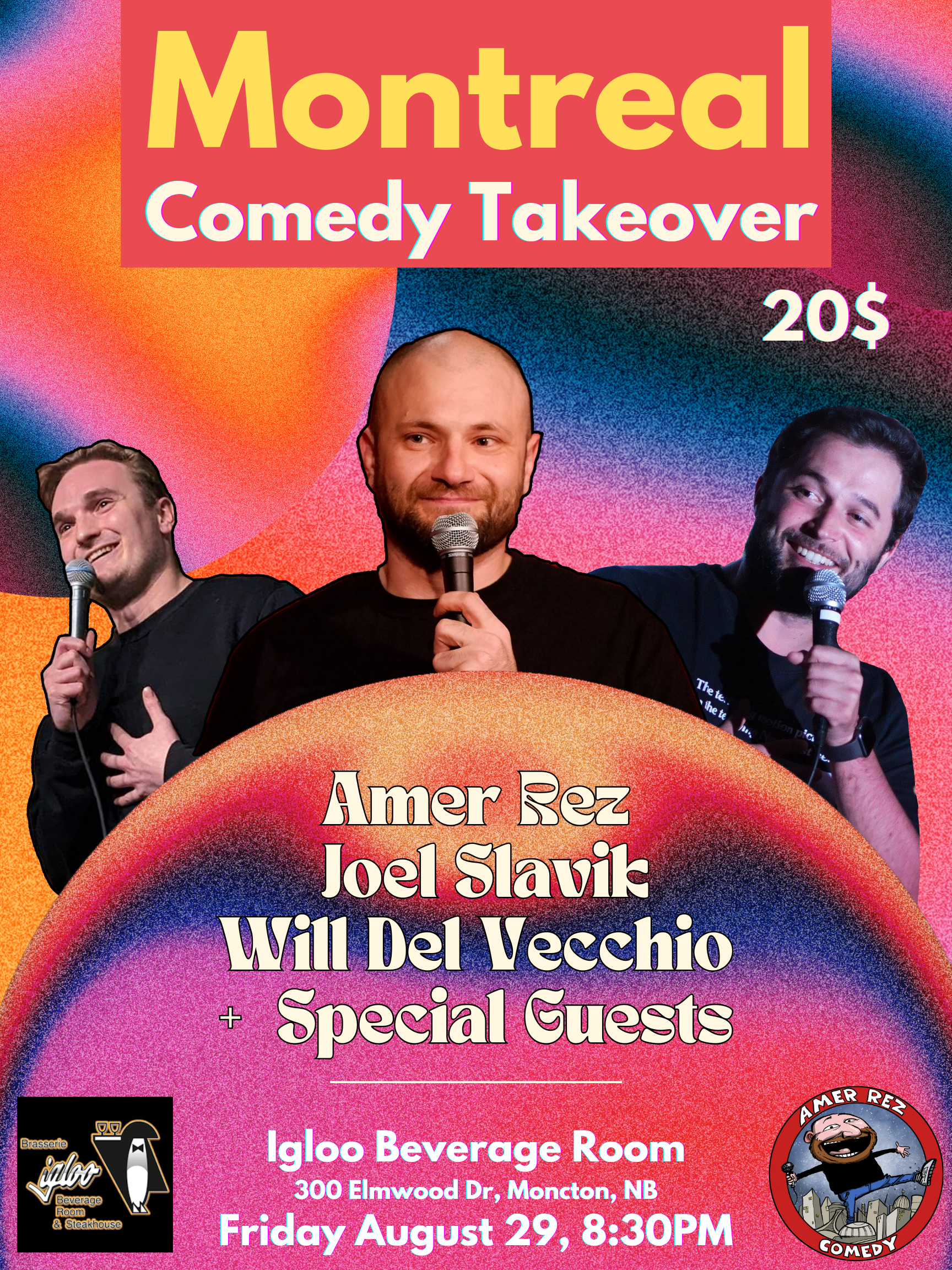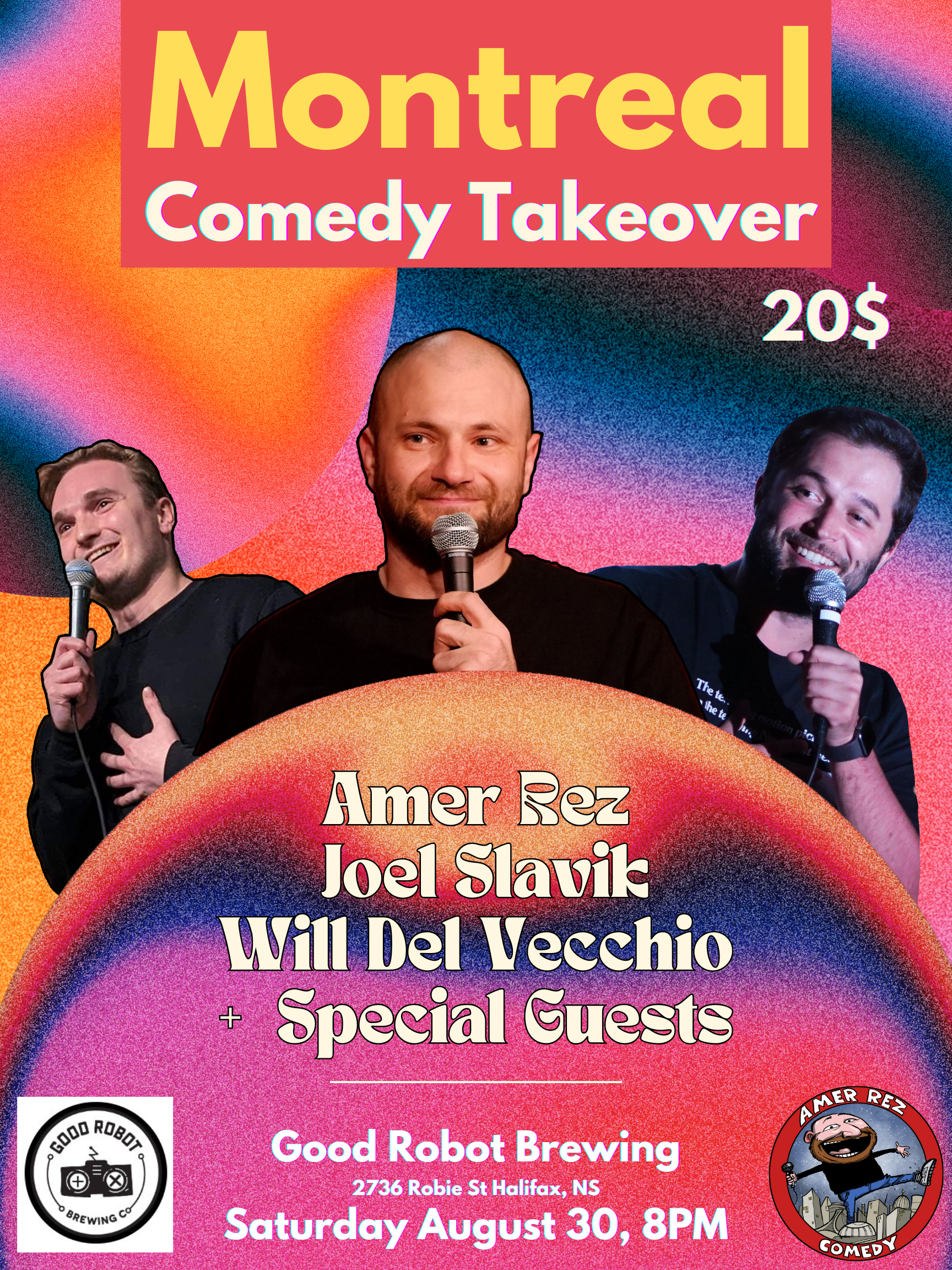 Welcome to The Good Night Comedy Show! Since its establishment in 2022, The Good Night Comedy Show has become a cornerstone of Montreal's vibrant comedy scene. Hosted by Amer Rez, the show features some of the up and coming comedians from the city and around the globe. Join us for a night of laughter alongside fellow Montrealers and visitors from all over the world, and discover why this show is quickly becoming a true Montreal institution. Details: 🗓 Every Tuesday at 8:30 PM ⏰ Doors Open at 7:30 PM / Show Starts at 8:30 PM 🎟️: 5$ only through eventbrite link! 🍻 Happy Hours 8PM to 10PM 📍 Location: M Montreal (Bar Showroom), 1245 St. André Street, Montreal, H2L 3T1 Come experience the comedy magic—we can't wait to see you there!