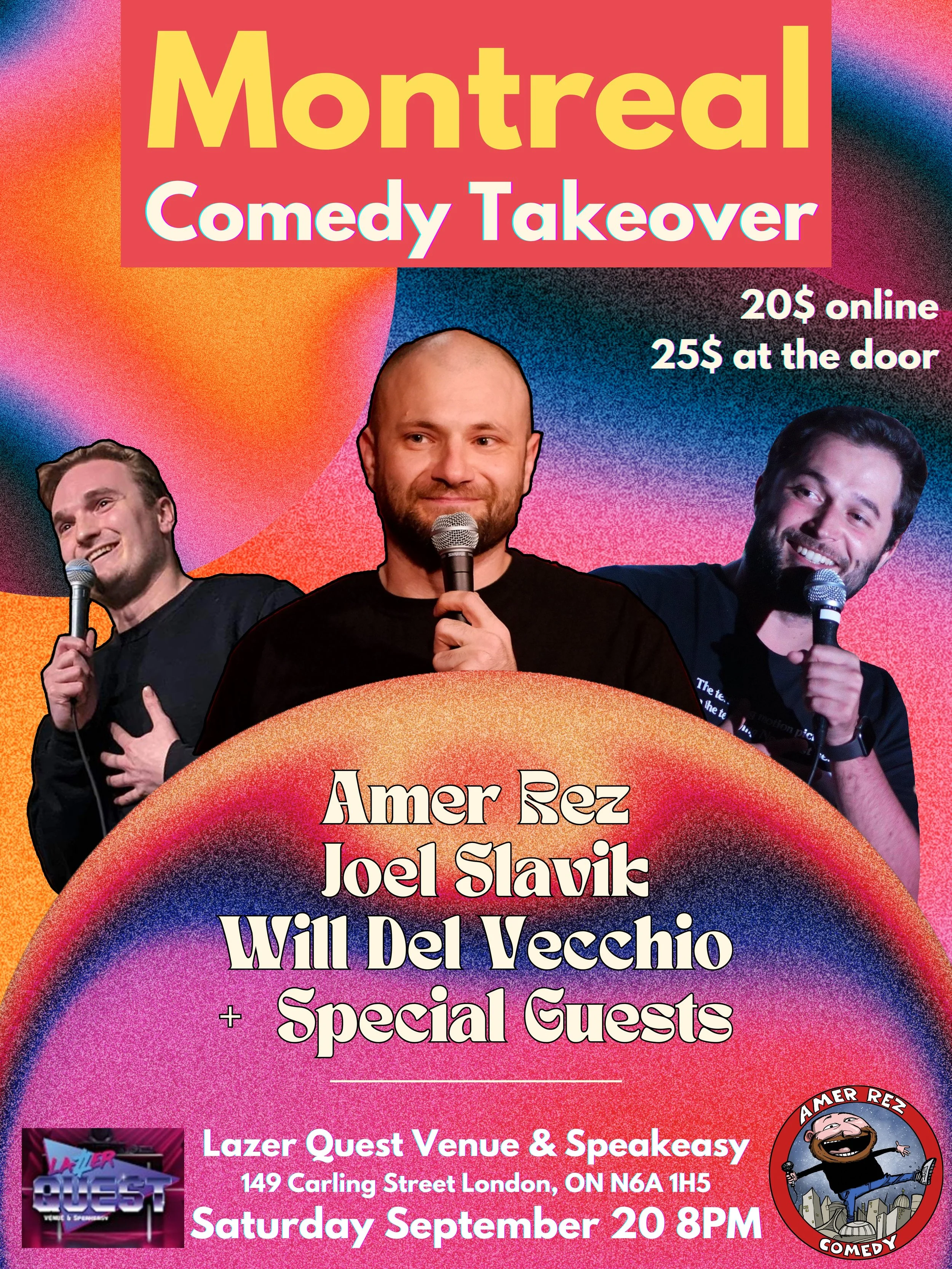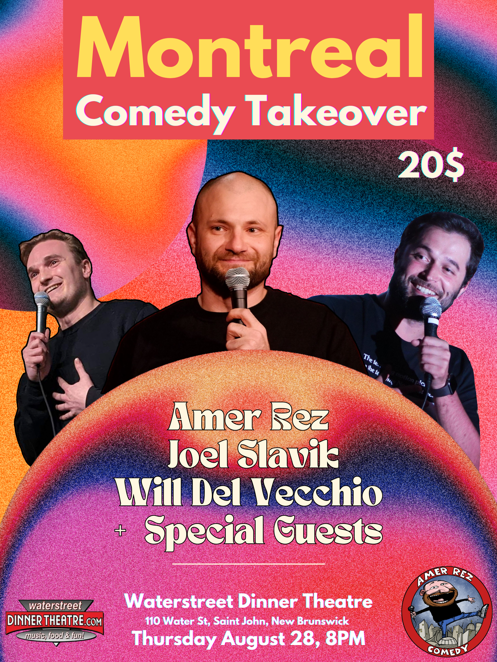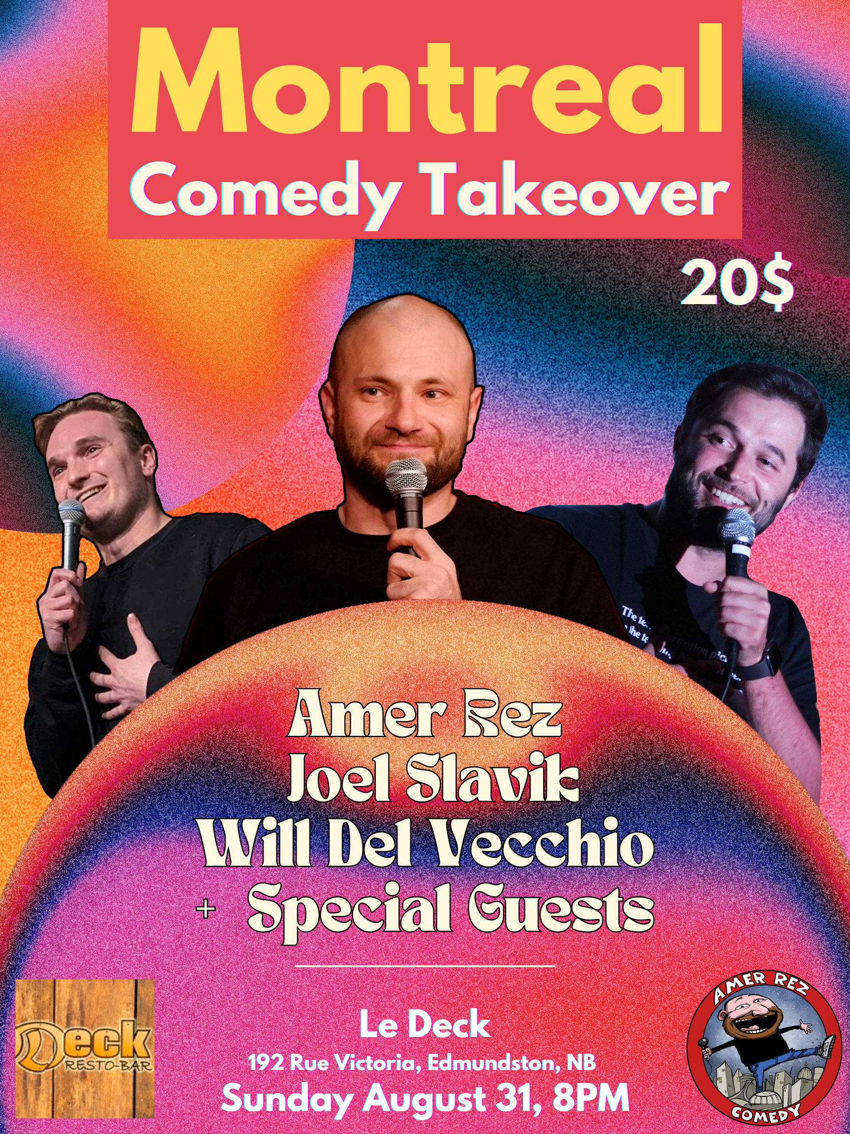 Welcome to The Good Night Comedy Show! Since its establishment in 2022, The Good Night Comedy Show has become a cornerstone of Montreal's vibrant comedy scene. Hosted by Amer Rez, the show features some of the up and coming comedians from the city and around the globe. Join us for a night of laughter alongside fellow Montrealers and visitors from all over the world, and discover why this show is quickly becoming a true Montreal institution. Details: 🗓 Every Tuesday at 8:30 PM ⏰ Doors Open at 7:30 PM / Show Starts at 8:30 PM 🎟️: 5$ only through eventbrite link! 🍻 Happy Hours 8PM to 10PM 📍 Location: M Montreal (Bar Showroom), 1245 St. André Street, Montreal, H2L 3T1 Come experience the comedy magic—we can't wait to see you there!