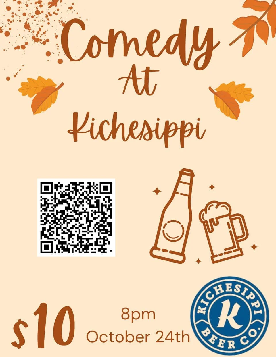 Welcome to Comedy At Kichesippi Oct 24th! Get ready for a night filled with laughter and good vibes at Kichesippi Beer Co. Join us Oct 24th at 8:00 PM for a hilarious comedy show featuring some of the funniest comedians in town. Don't miss out on this opportunity to unwind and enjoy some great beer while laughing your heart out. Grab your friends and come on down to Kichesippi Beer Co. for a night you won't forget! Only $10