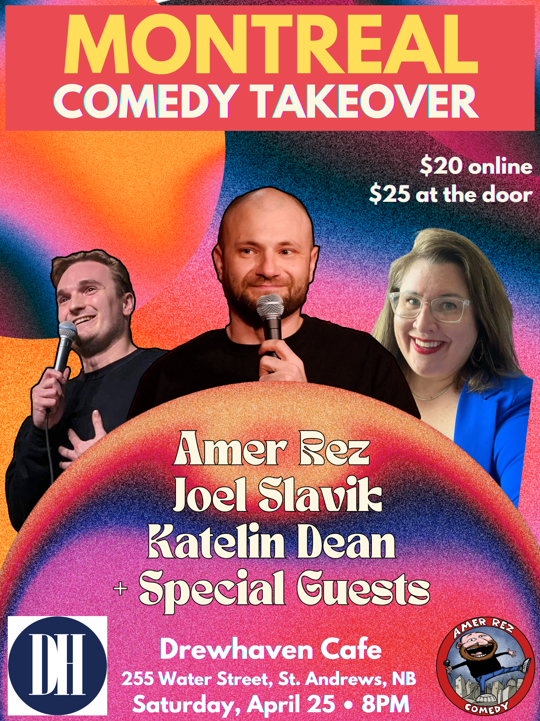 Looking for things to do in St. Andrews NB? Get ready for a night of live stand-up comedy as the Montreal Comedy Takeover brings some of the best comedians from Montreal to Drewhaven Cafe & Restaurant.